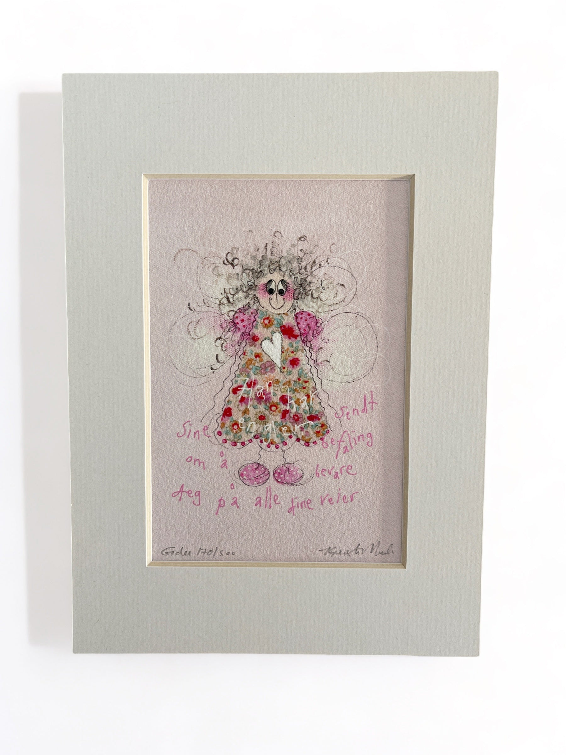 Teknikk: Håndkolorert Gicleè trykk. (Først males et maleri med blandede teknikker der det brukes akrylmaling, stoffer, tapeter, tegneblyanter, tusjer og penner. Maleriet trykkes deretter på en metode som heter «Gicleètrykk». Kunstneren godkjenner prøvetrykk før det trykkes. Når trykkene er ferdige, bearbeider kunstneren hvert enkelt trykk med å tegne og male oppå trykket igjen. Alle trykk blir med andre ord unike. Trykket signeres som håndkolorert trykk og er nummerert og signert.)