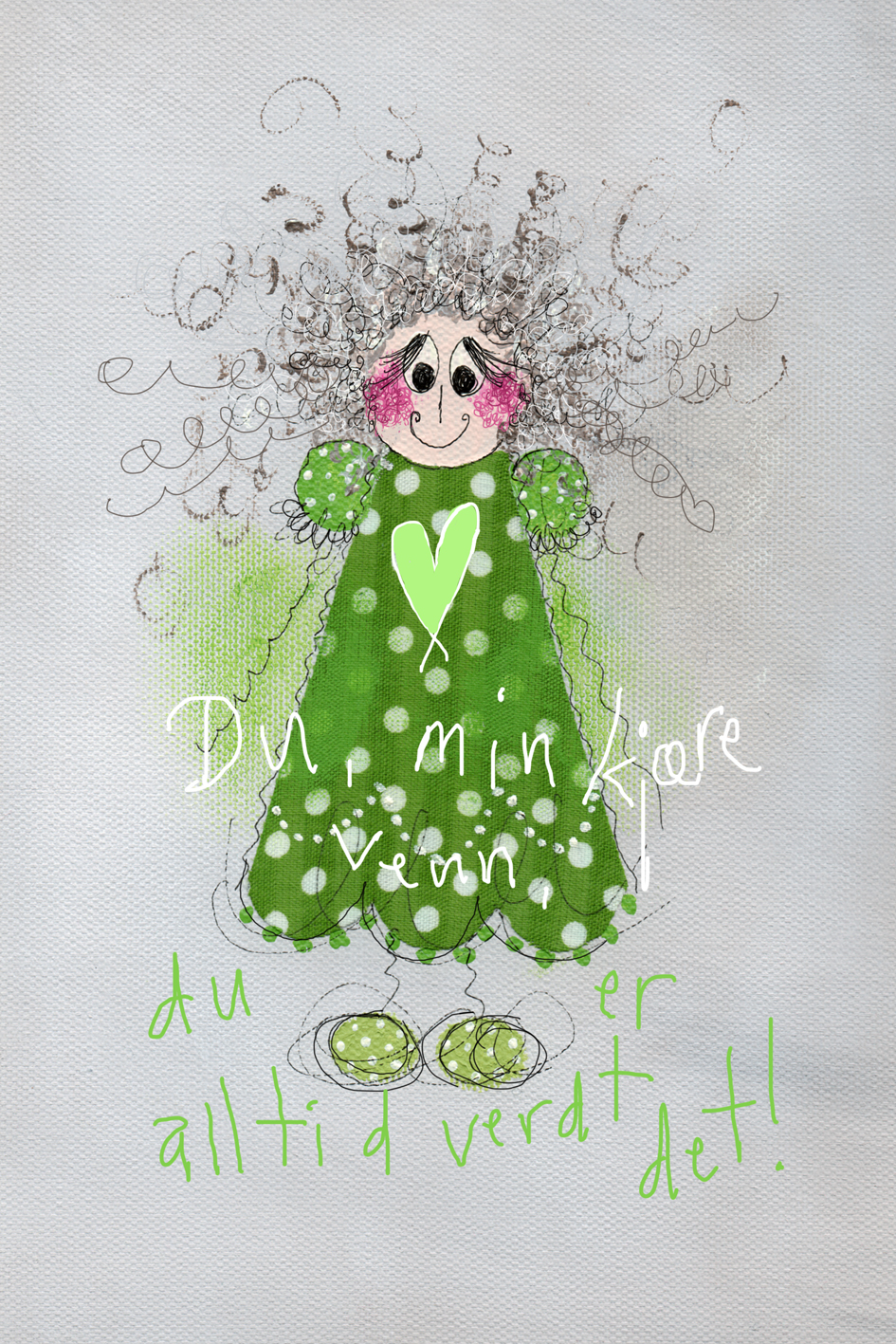 Teknikk: Håndkolorert Gicleè trykk. (Først males et maleri med blandede teknikker der det brukes akrylmaling, stoffer, tapeter, tegneblyanter, tusjer og penner. Maleriet trykkes deretter på en metode som heter «Gicleètrykk». Kunstneren godkjenner prøvetrykk før det trykkes. Når trykkene er ferdige, bearbeider kunstneren hvert enkelt trykk med å tegne og male oppå trykket igjen. Alle trykk blir med andre ord unike. Trykket signeres som håndkolorert trykk og er nummerert og signert.)