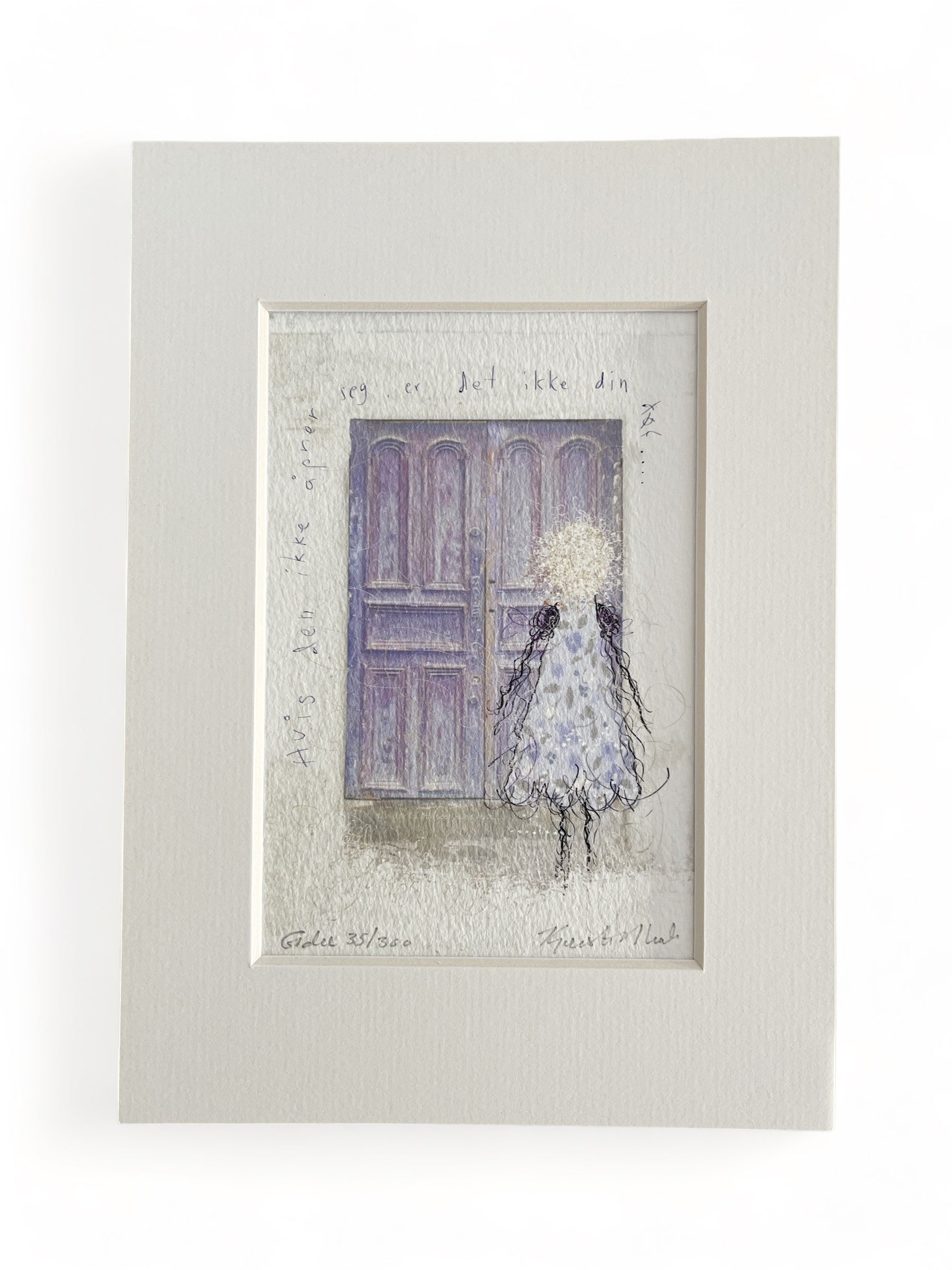 Teknikk: Håndkolorert Gicleè trykk. (Først males et maleri med blandede teknikker der det brukes akrylmaling, stoffer, tapeter, tegneblyanter, tusjer og penner. Maleriet trykkes deretter på en metode som heter «Gicleètrykk». Kunstneren godkjenner prøvetrykk før det trykkes. Når trykkene er ferdige, bearbeider kunstneren hvert enkelt trykk med å tegne og male oppå trykket igjen. Alle trykk blir med andre ord unike. Trykket signeres som håndkolorert trykk og er nummerert og signert.)