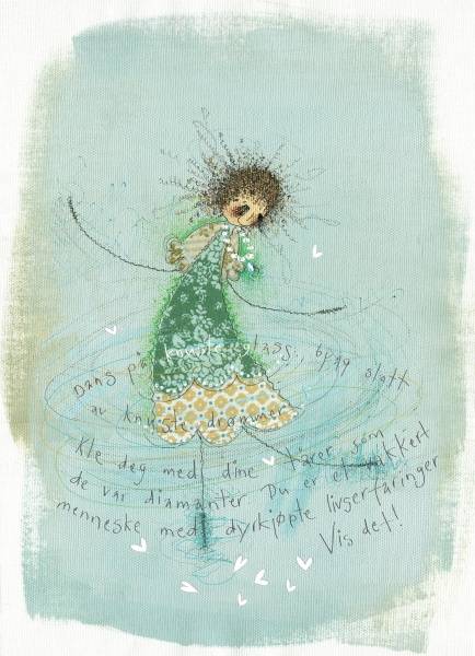 Tekst: Dans på knuste glass, bygg slott av knuste drømmer. Kle deg med dine tårer som de var diamanter. Stolt og sterk! Du er et vakkert menneske med dyrekjøpte livserfaringer. Vis det!
