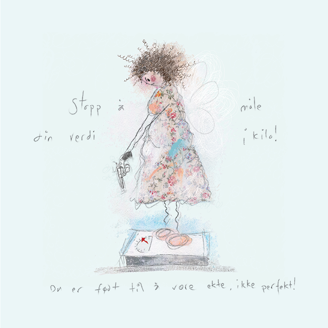 Tekst: Stopp å måle din verdi i kilo! Du er født til å være ekte, ikke perfekt!
