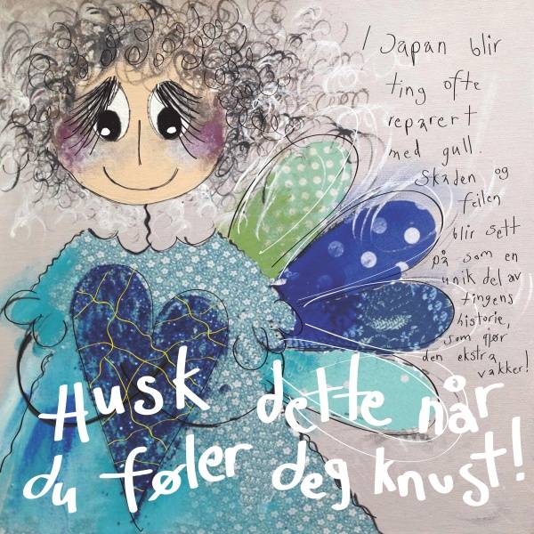 Tekst: I Japan blir knuste ting ofte reparert med gull. Skaden og feilen blir sett på som en unik del av tingens historie, som gjør den ekstra vakker. Husk dette når du føler deg knust!