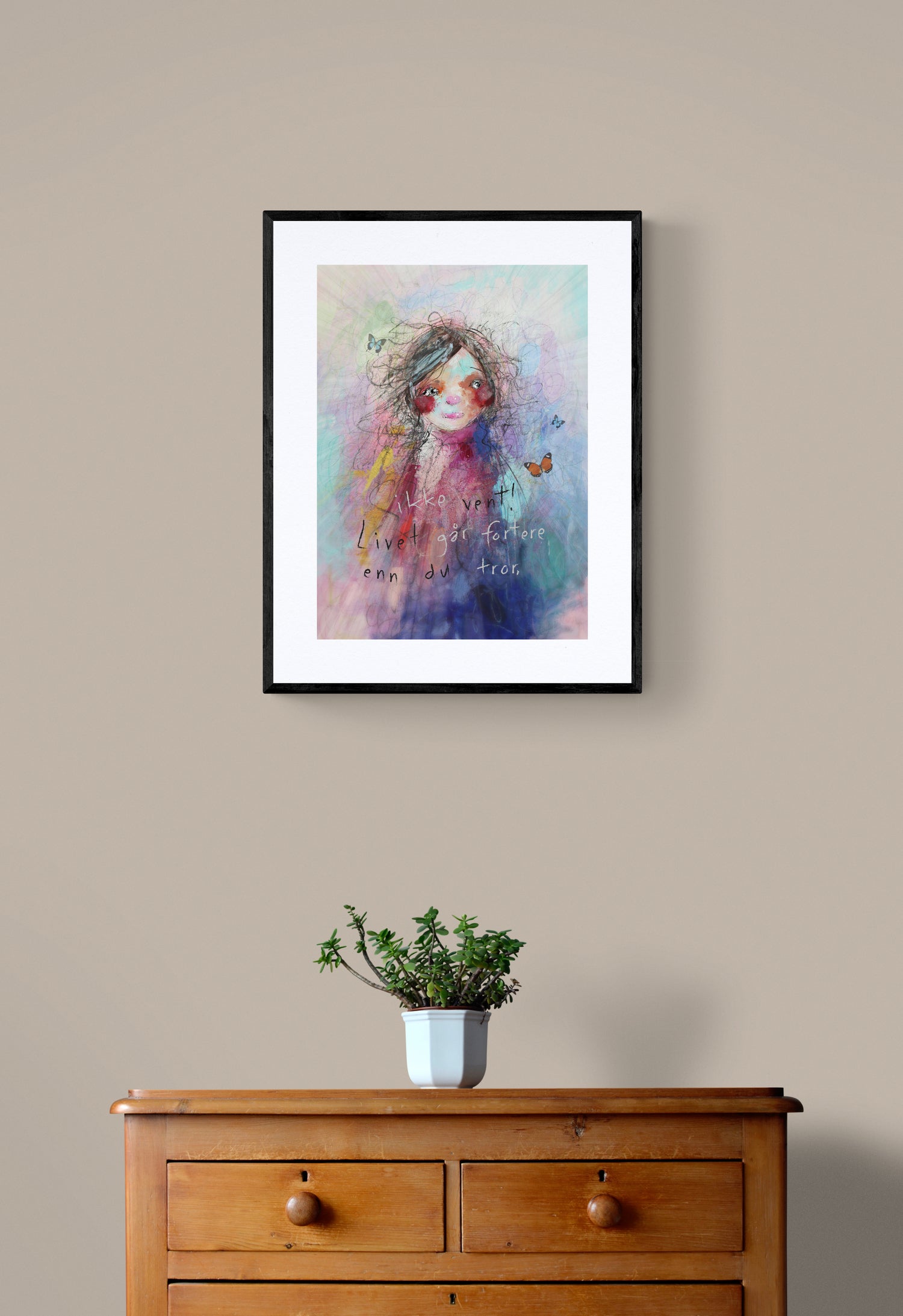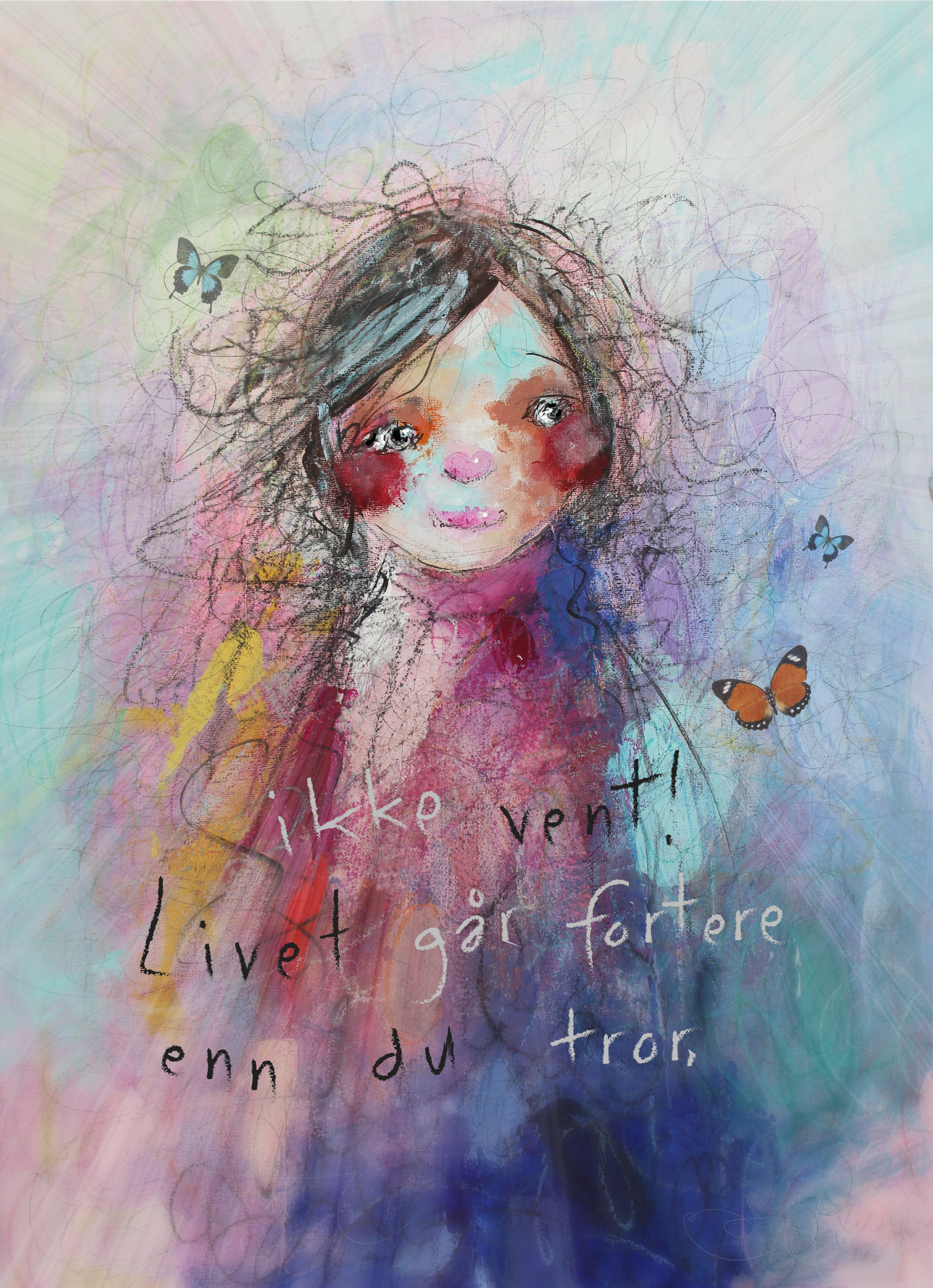 La deg inspirere av kunstverket "Ikke Vent!" av Kjersti Munkejord Lamb. Dette kunsttrykket fanger essensen av å leve i øyeblikket, og minner oss om å ta vare på de små, men viktige øyeblikkene i livet.